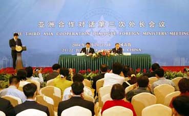 會議背景:出席亞洲合作對話(ACD)第三次外長會議的二十二國外長或代表團團長,在充分討論的基礎上,就各成員國之間進一步拓展和深化各領域的合作達成共識,通過了進一步明確亞洲合作的原則、內容和方式的《亞洲合作宣言》。