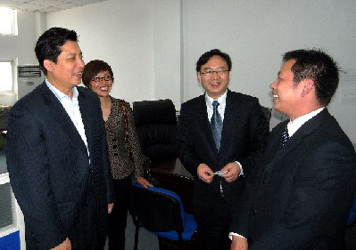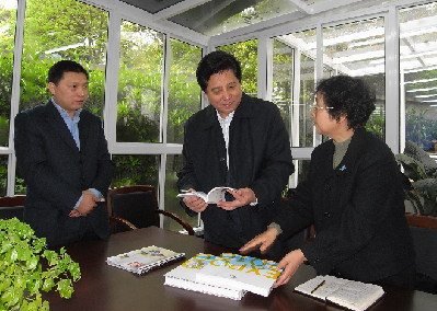 | 郭曉勇向中譯公司副總經理賈硯麗等了解公司世博會翻譯出版情況 |