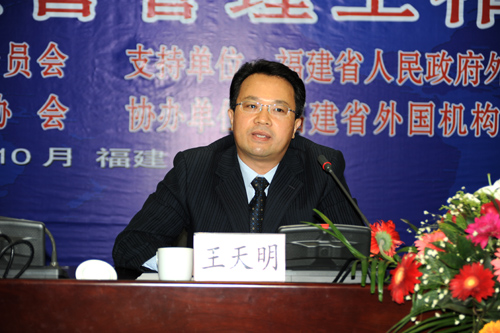 福建省人民政府外事辦公室副主任、福建省翻譯協會副會長王天明代表承辦單位致歡迎詞。